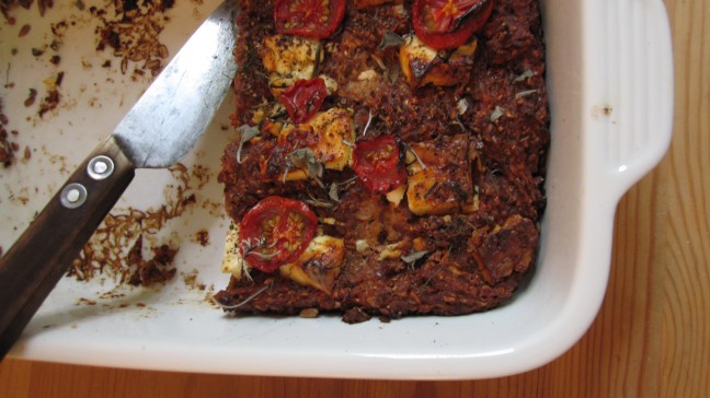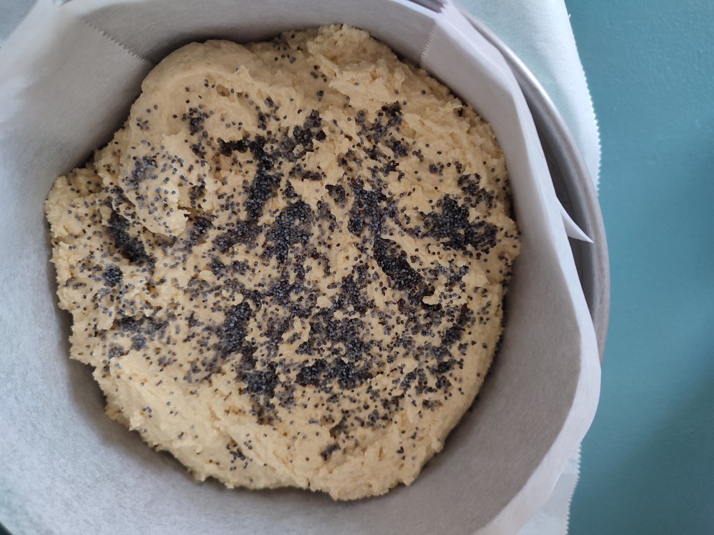 Den Teig entweder auf eine jeweils gefettete (z.B. mit Alsana, das ist eine vegane „Butter“) Tarteform und eine kleine Springform (die passen bei mir zeitgleich in den Ofen, das spart Energie)oder eine große Springform füllen, mit den gefrorenen Blaubeeren bestreuen und bei