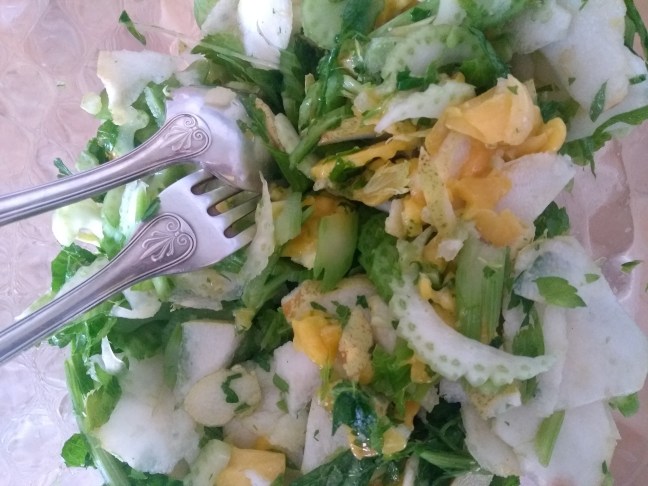 Dazu passt perfekt eine „Sahne“ aus 200 gr. Cashewkernen, im Mixer fein gemahlen und mit 100 – 150 ml Wasser so lange gemixt bis sie cremig ist!