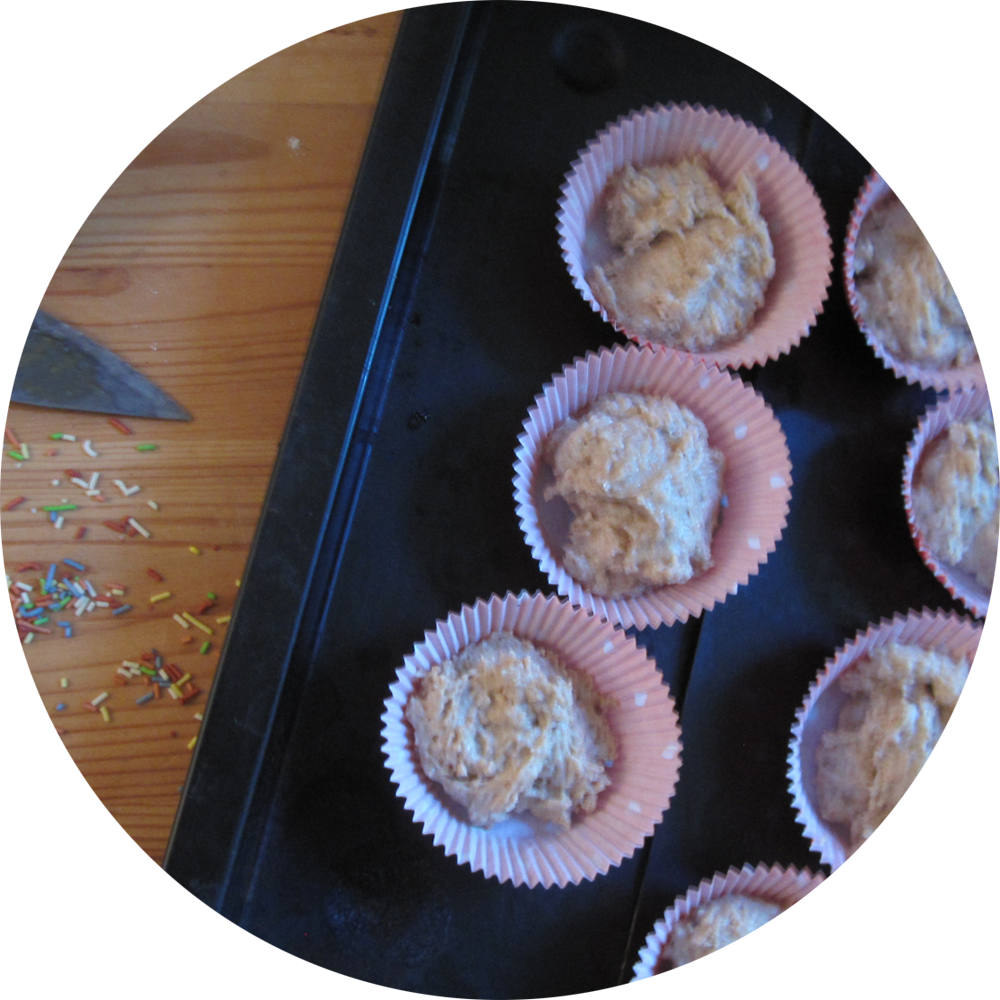 Mit einem Teelöffel in Muffinformen setzen, bei 180 °C ca. 20 Minuten backen,